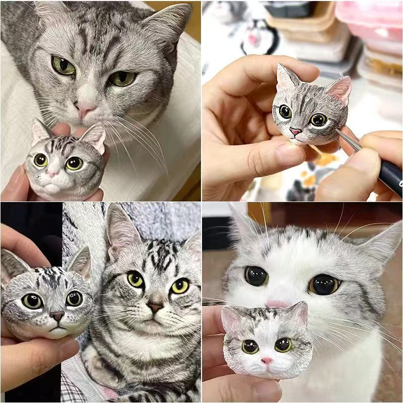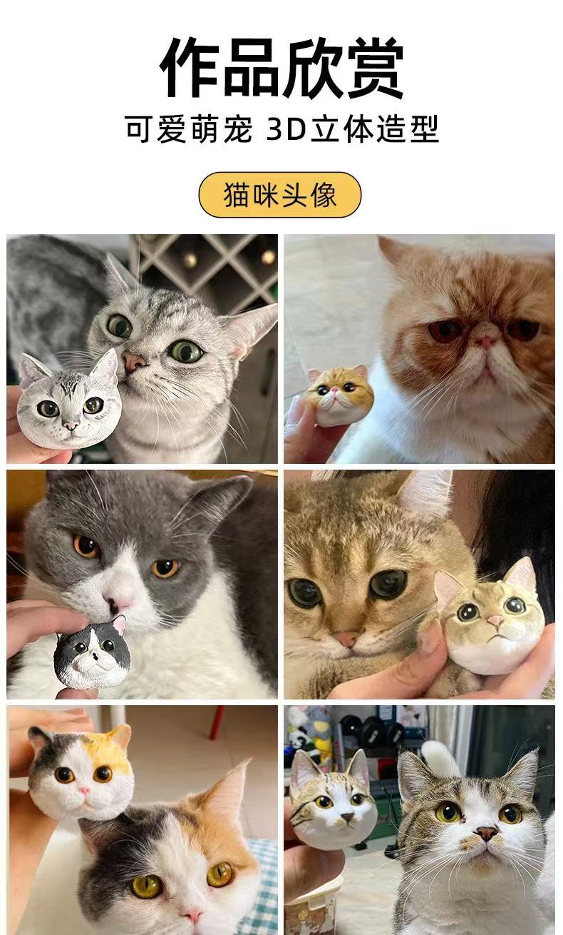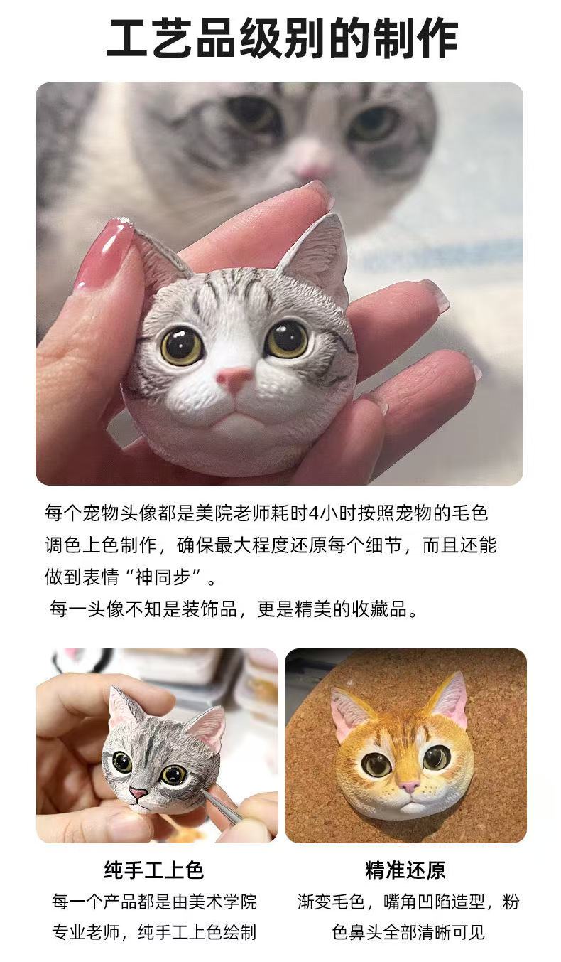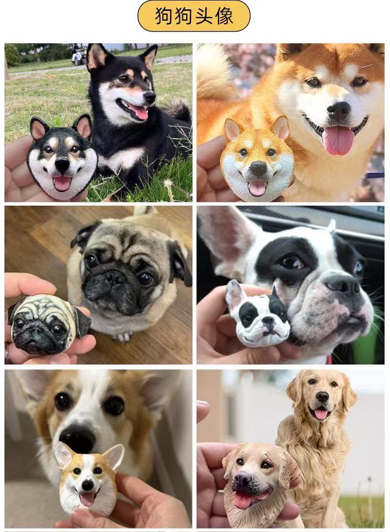 ollig·手繪寵物石膏頭像狗狗貓咪冰箱貼全身3d立體彩繪高顏值車載擴香石