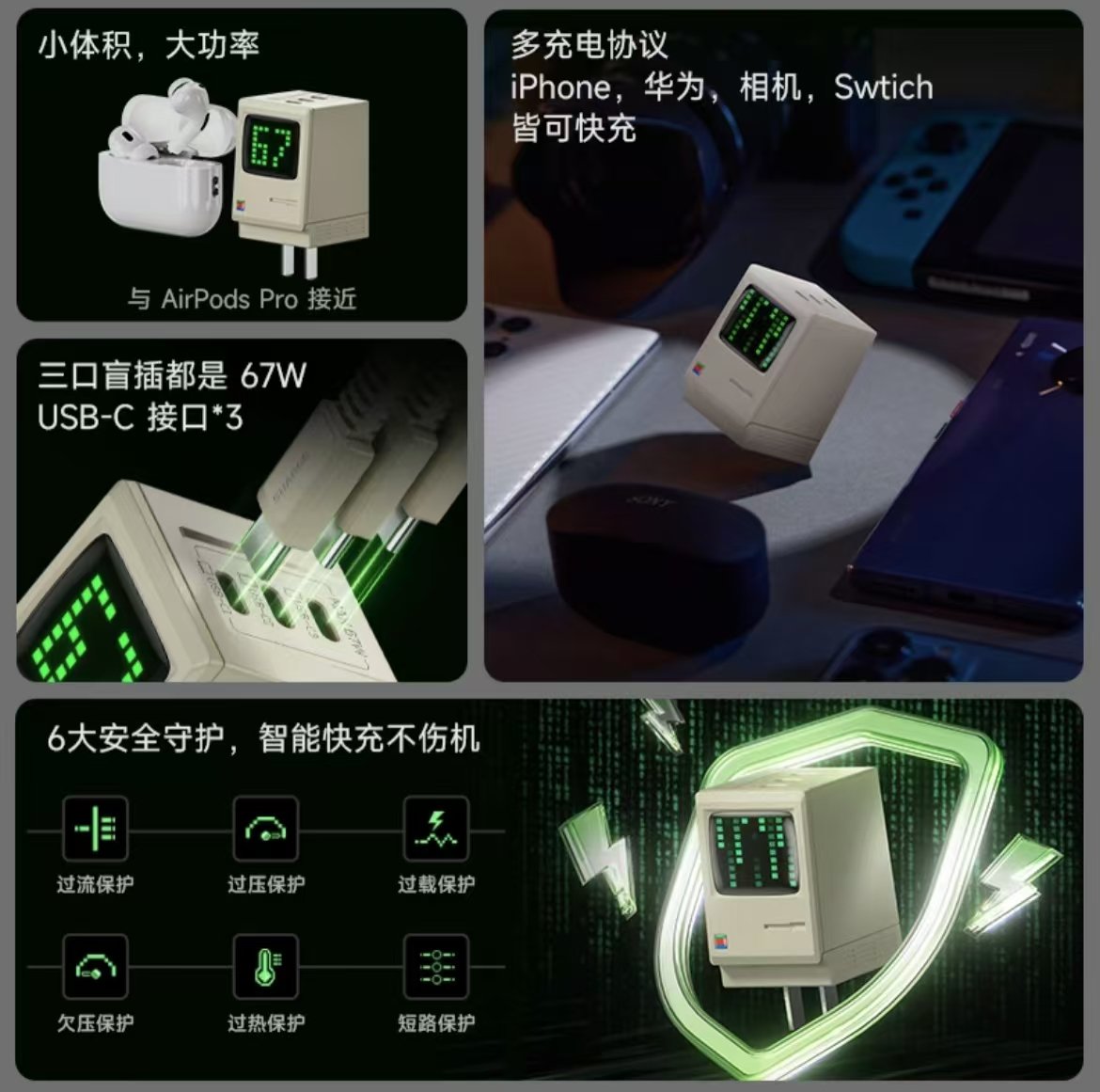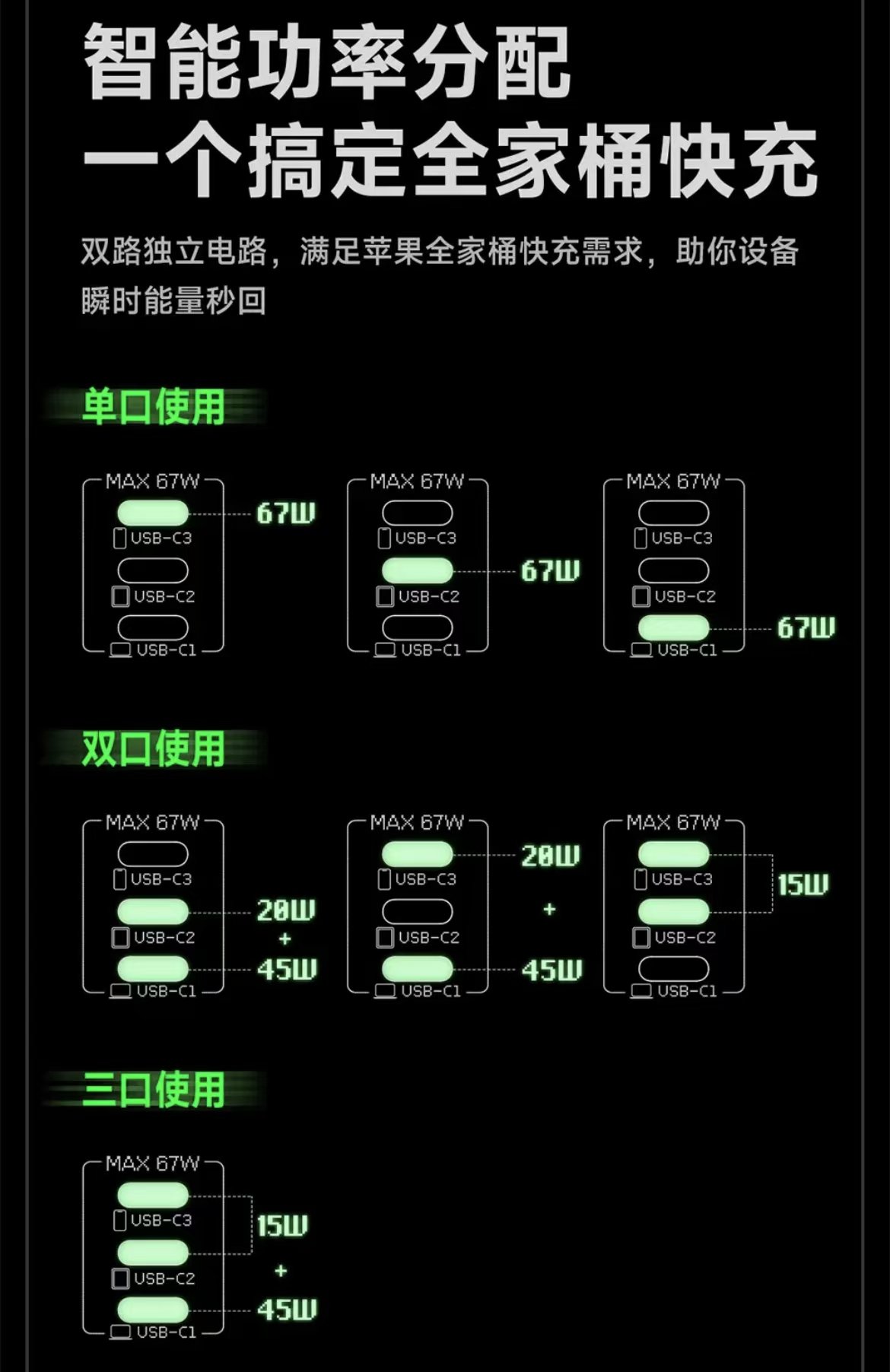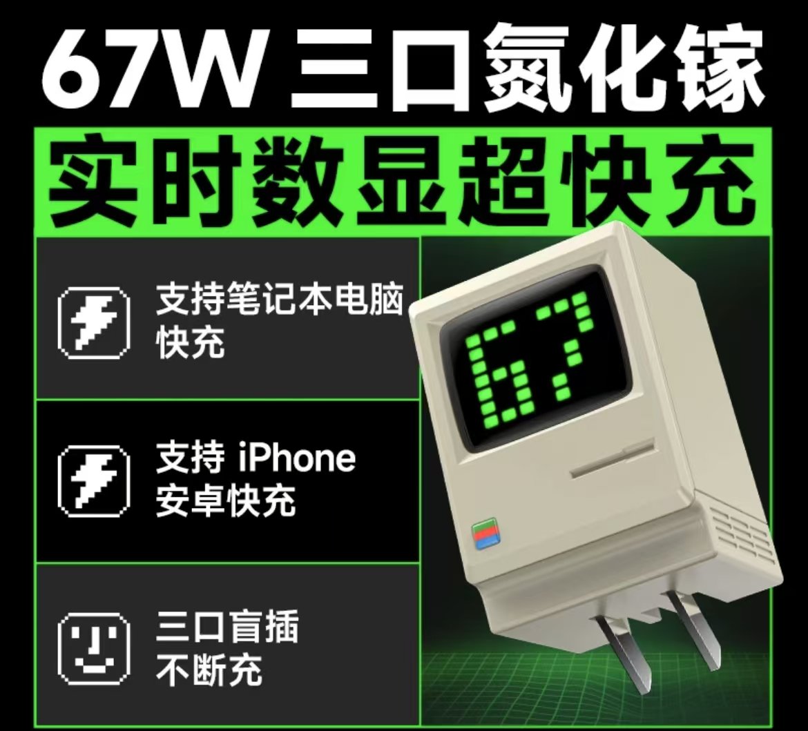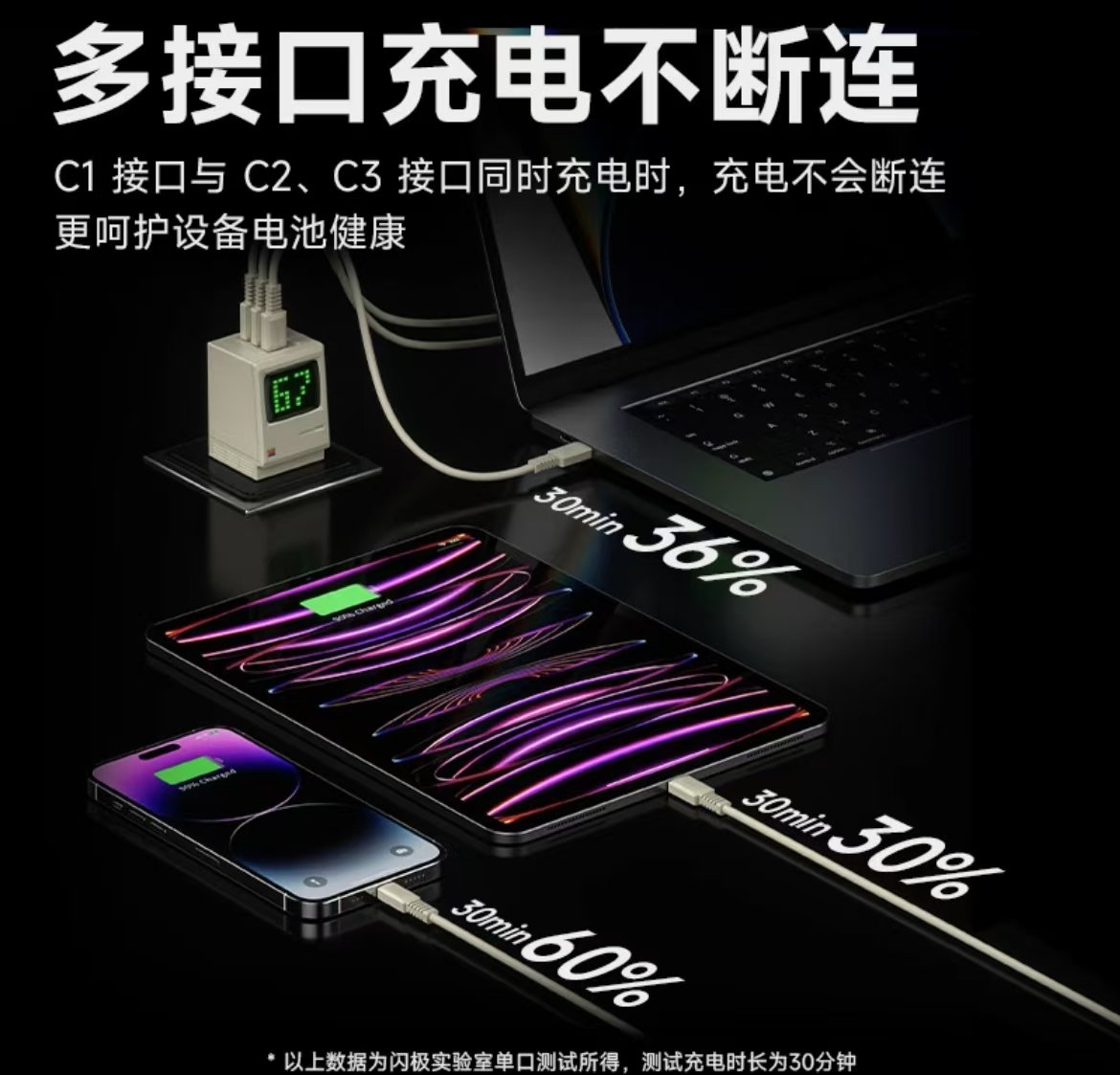 ollig·閃極67W麥金塔氮化鎵充電器多接口適用蘋果安卓筆記本快充便攜