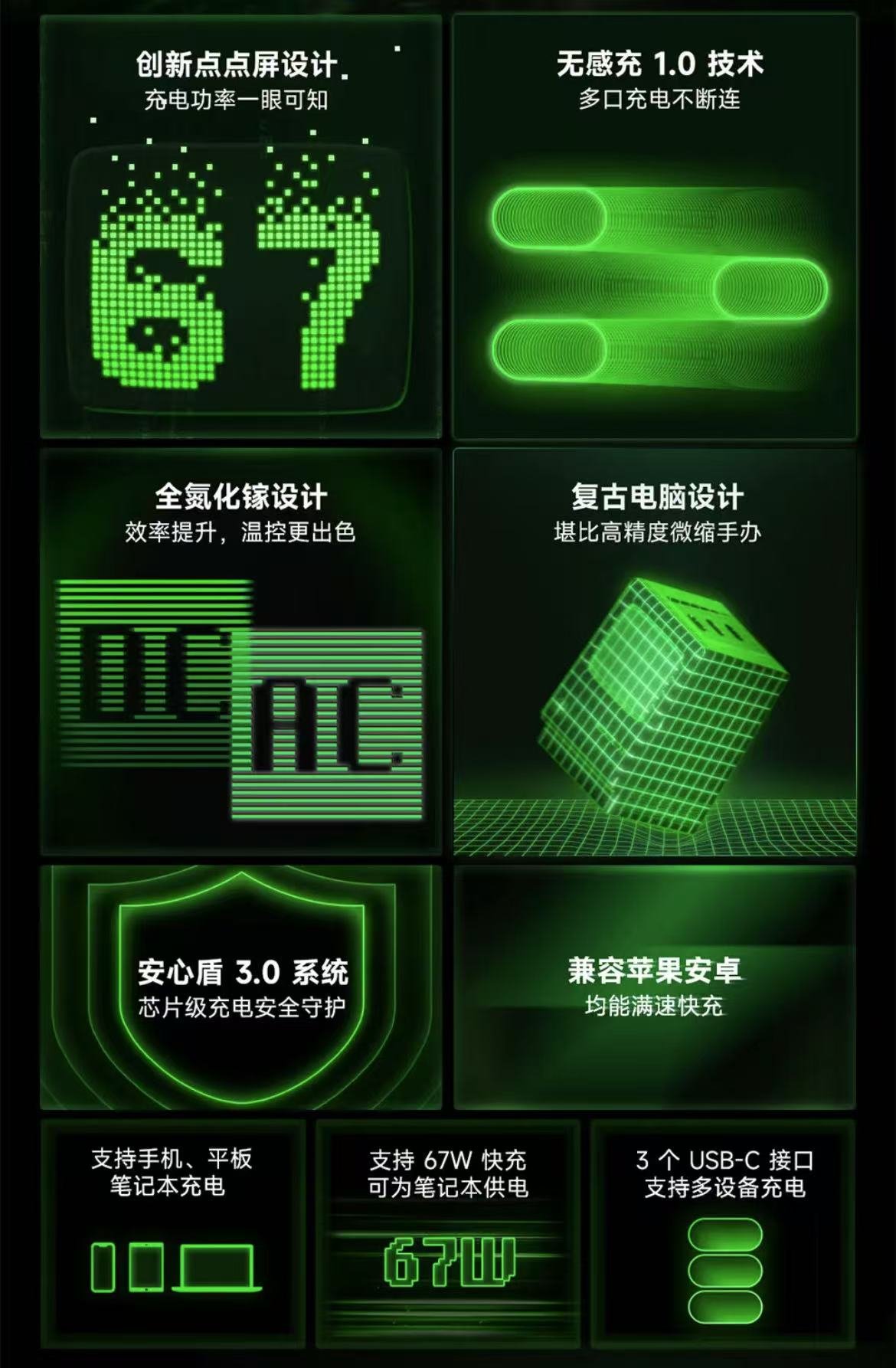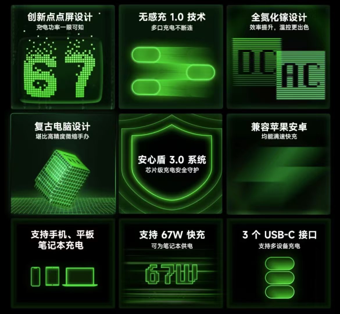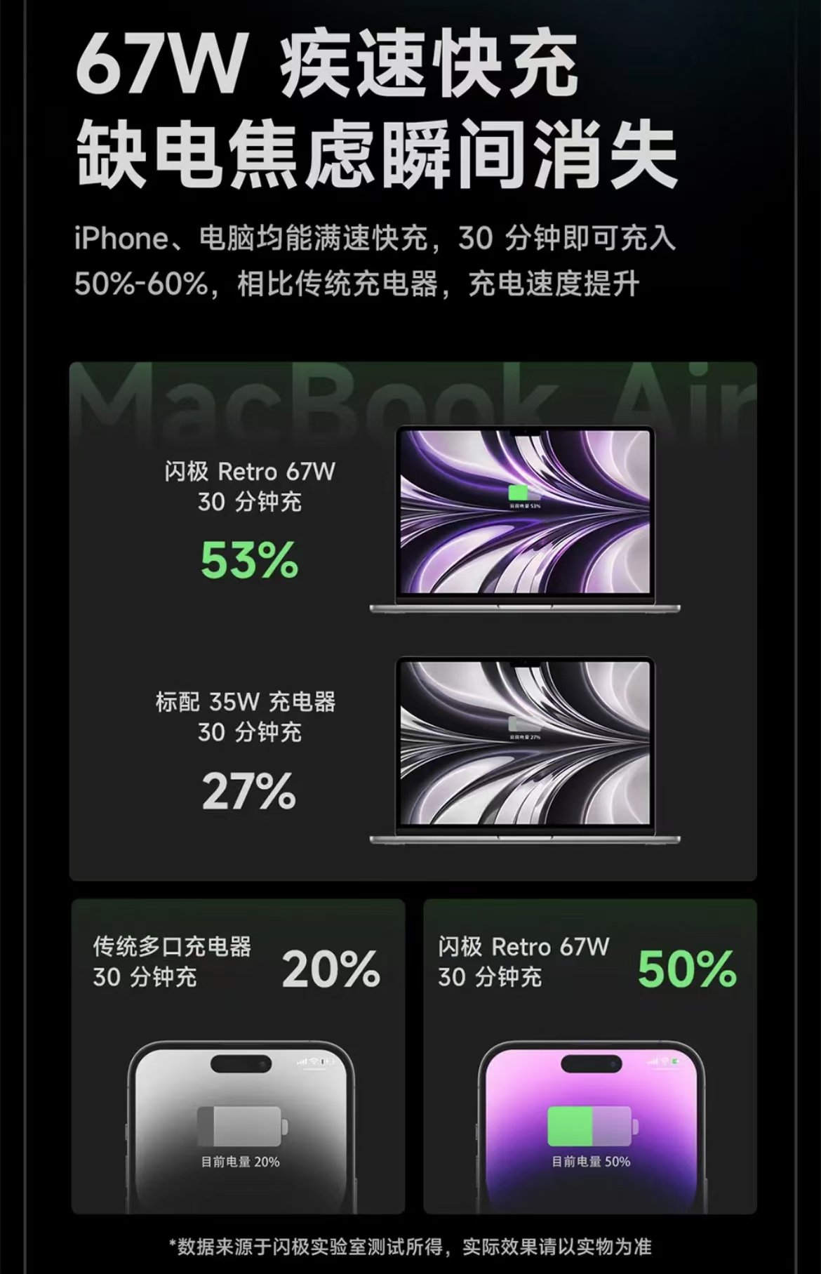 ollig·閃極67W麥金塔氮化鎵充電器多接口適用蘋果安卓筆記本快充便攜