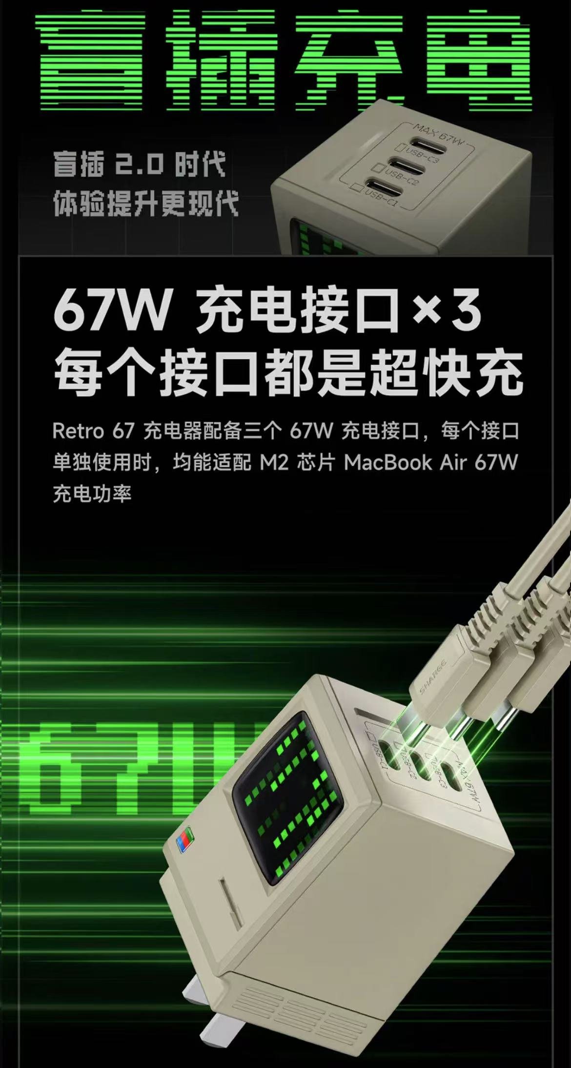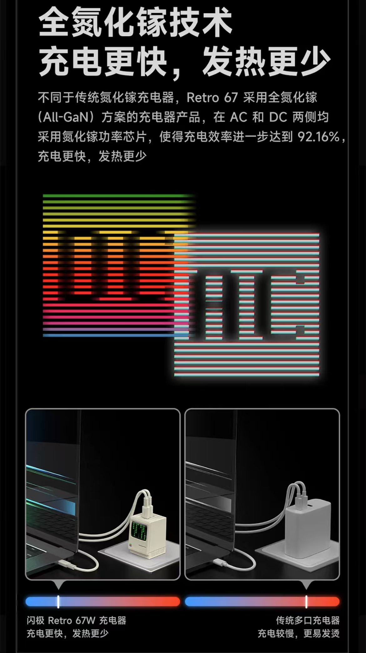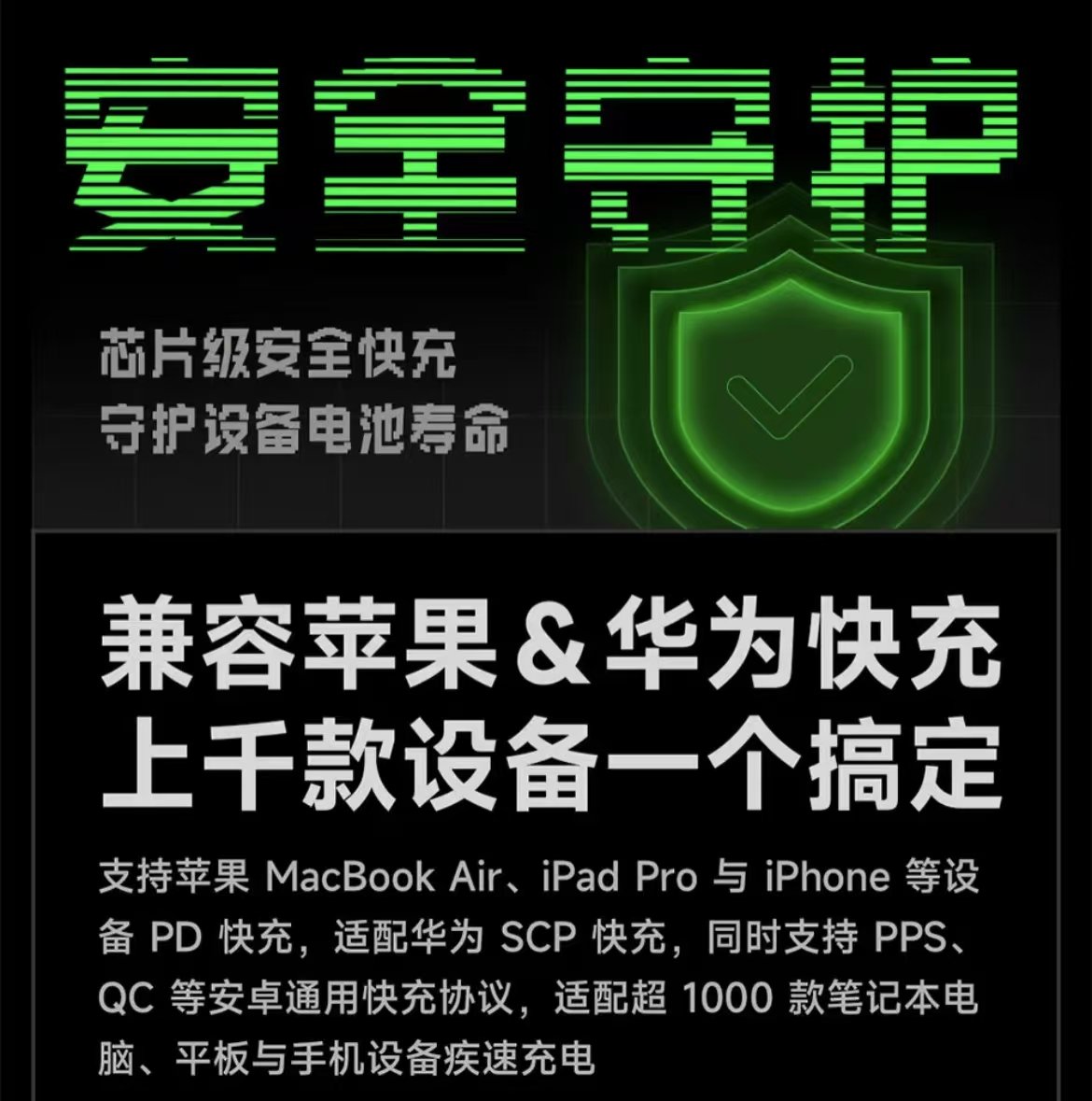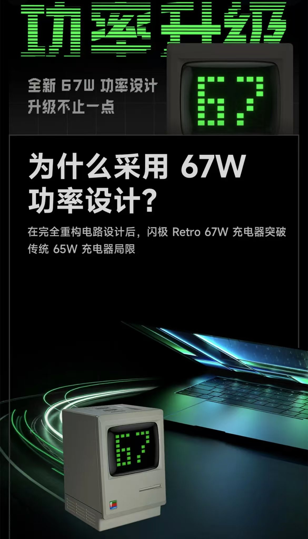 ollig·閃極67W麥金塔氮化鎵充電器多接口適用蘋果安卓筆記本快充便攜