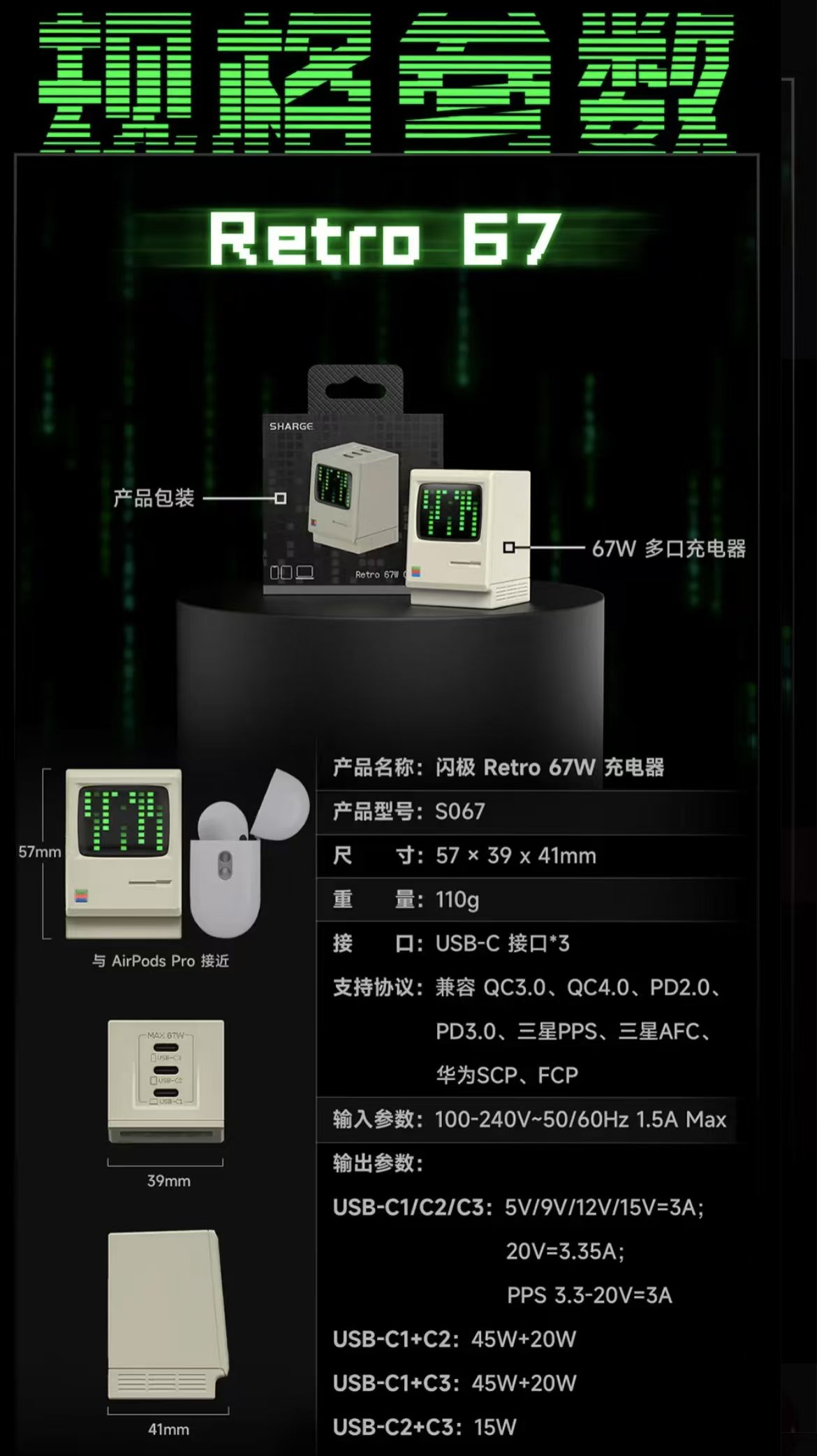 4⃣️67W 麥金塔充電器旅行裝 售價2050台幣