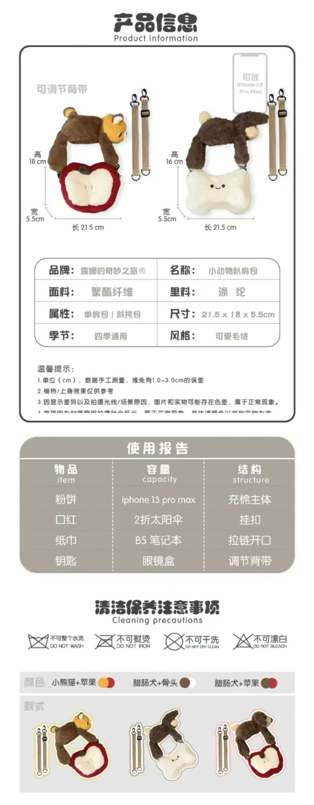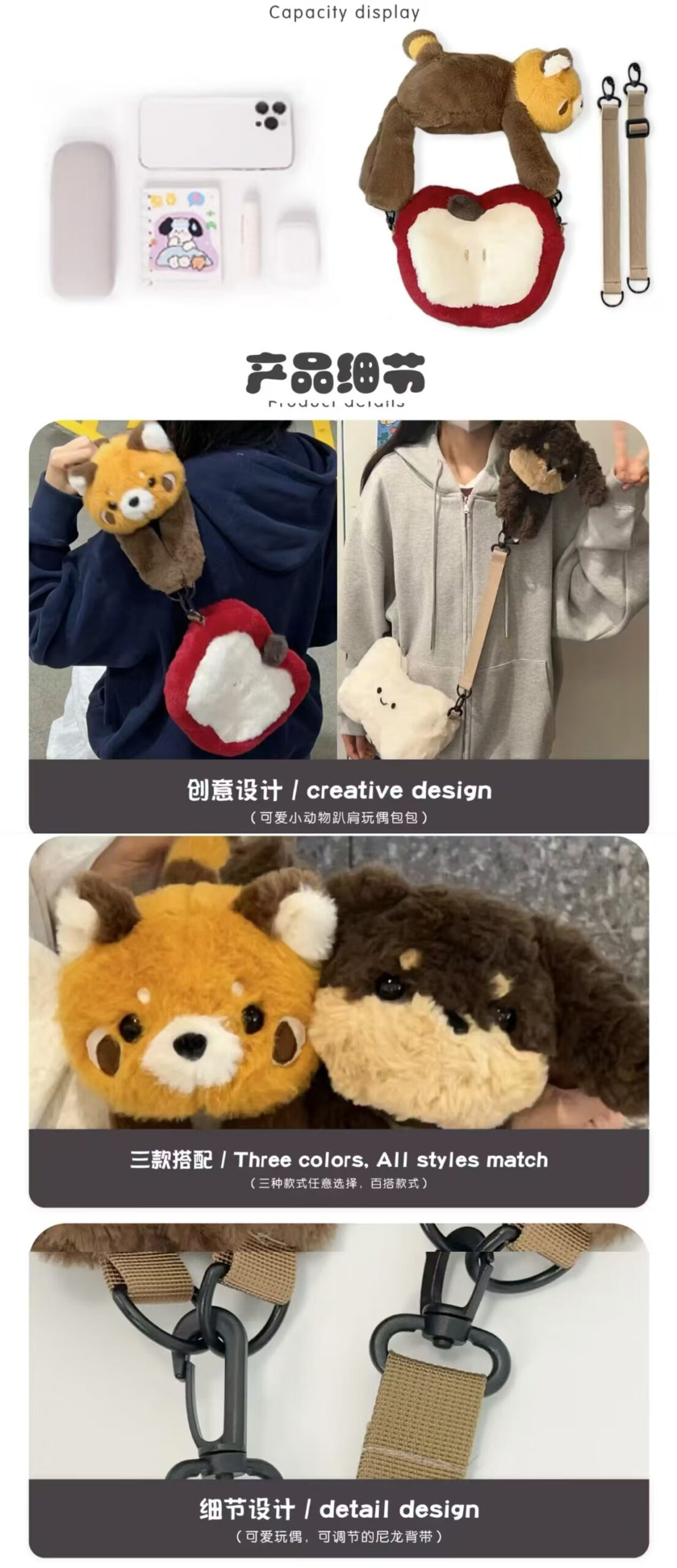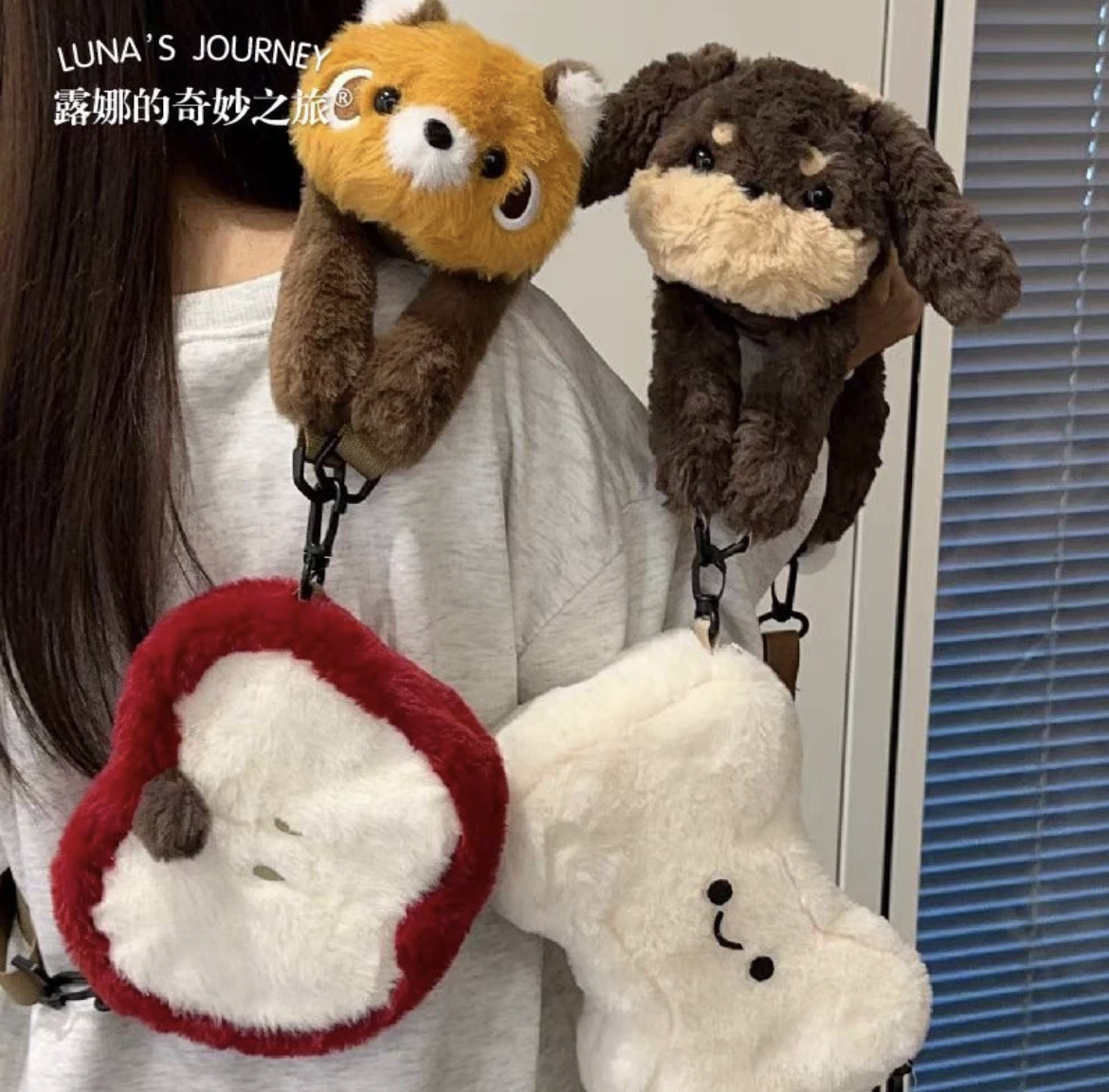 ollig·露娜的奇妙之旅趴肩包可愛毛絨玩偶斜挎背包包