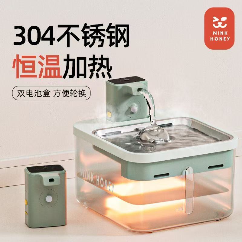 ollig·WINK HONEY貓咪飲水機不鏽鋼無線寵物餵水器恆溫加熱靜音智能感應
