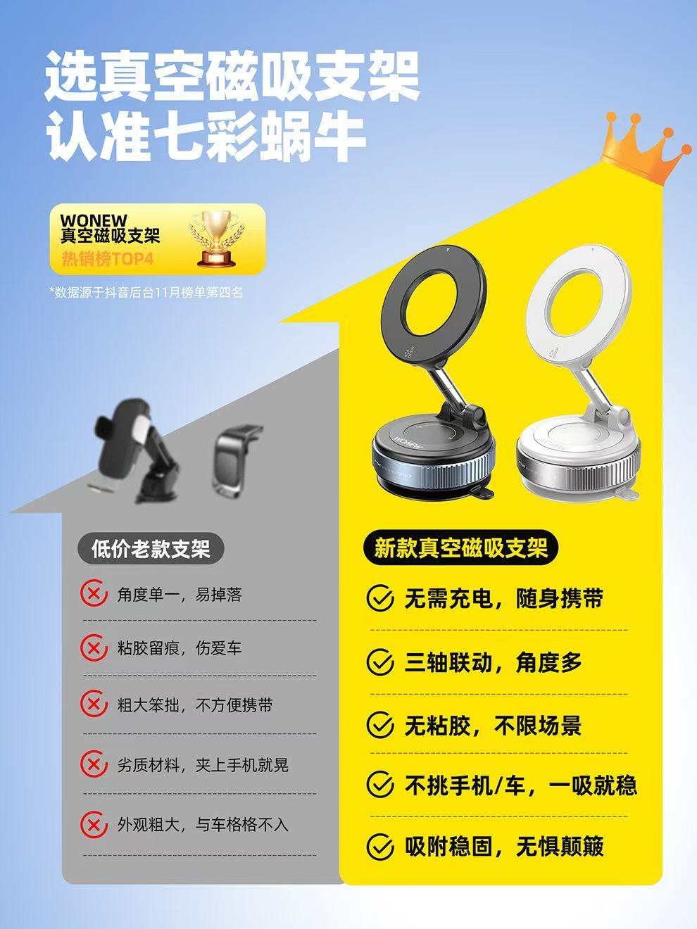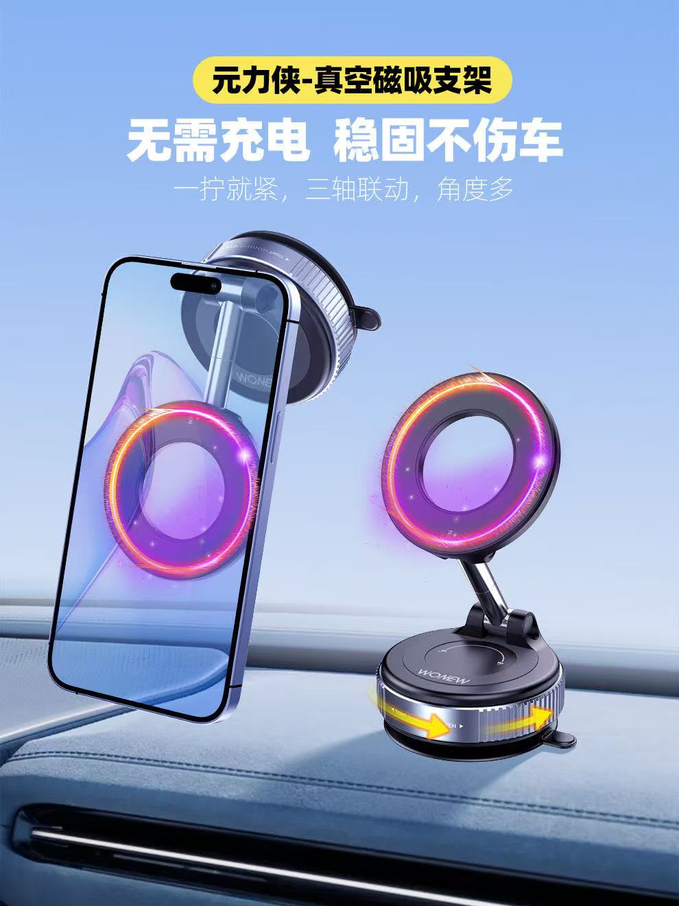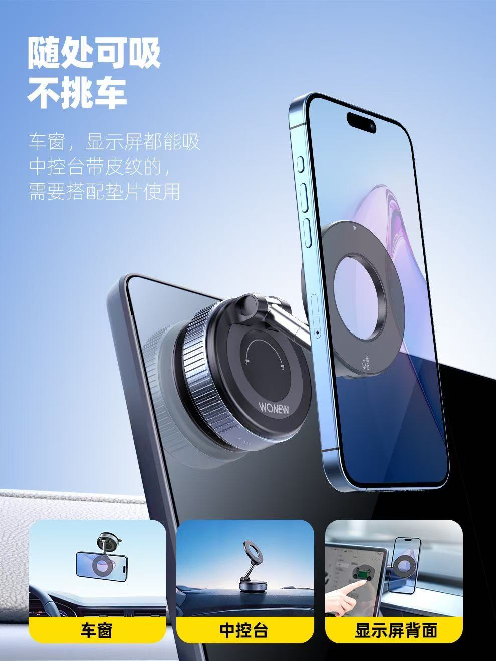 ollig·WONEW真空磁吸车载手机支架新款随取随用旅行飞机高铁vlog拍摄